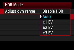 4. The HDR mode screen will appear. Select [Adjust dyn range], then press the <SET> button.