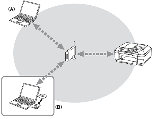 In order to use this printer with the computer (B),