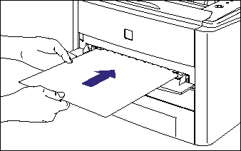The manual feed slot can be loaded with only a sheet of paper that is 76.2 to 215.9 mm wide and 127.0 to 355.6 mm long. When printing only a sheet of paper that is different in size or type from the one loaded in the paper cassette, load the paper in the manual feed slot.