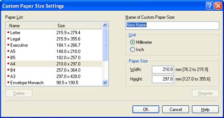 When printing custom size paper, you need to register the custom paper size in the printer driver previously using the following procedure.
