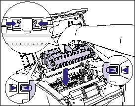 9. Holding the grip on the toner cartridge, install it into the printer.