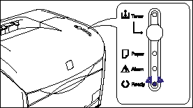 The Toner indicator goes off after a short period of time, and the Ready indicator (blue) comes on.