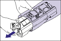 To pull out the sealing tape, hold the tab at the end of it, and then pull it out straight in the direction of the arrow.