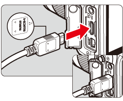 HDMI MINI> logo facing the front of the camera, insert it into the <HDMI OUT> terminal.