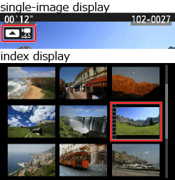 ] icon displayed on the upper left indicates a movie. - On the index display, the perforation on the left edge of the image indicates a movie. As movies cannot be played on the index display, press the <