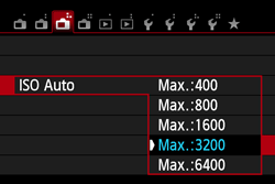 For ISO Auto, you can set the maximum ISO speed limit within ISO 400 - 6400.