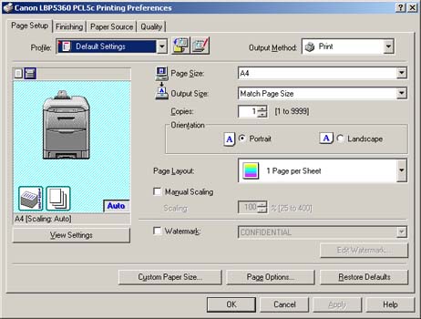 The screen shots used in this section are from Windows 2000 on which PCL 5c Printer Driver is used.