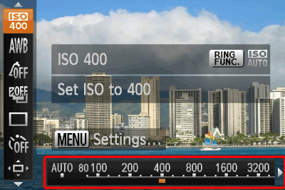 ) appears when you press the <Shutter Button> halfway, it is recommended to gradually raise the ISO speed in increments such as [ISO 80], [ISO 100], etc., and then set the [ISO Speed] when the camera shake warning icon (