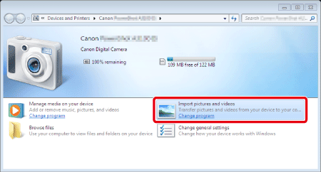 - The following screen appears. Double-click [Import pictures and videos] (