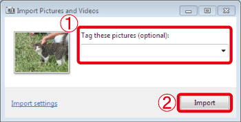 In the [Tag these pictures] field, you can enter a tag for the images. You can also leave the field blank when importing the image.