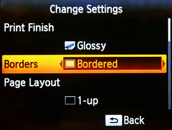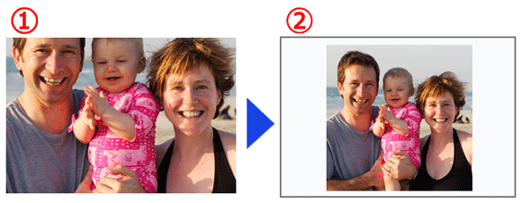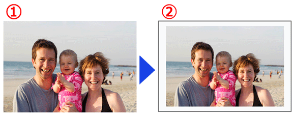 To prevent an image from being cut off when printing on paper that differs in size from the image’s aspect ratio, set the [Borders] menu option to [Bordered]. For more information on printing an image with a border, please refer to the following section.
