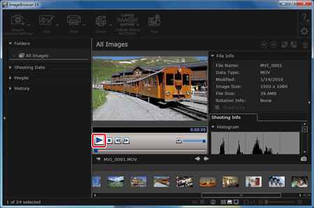 1. After starting ImageBrowser EX, double-click the movie you want to play back on the main screen. A [
