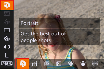 | Shooting in Various Conditions | Shoot portraits | [Portrait] ( ) | Take shots of people with a softening effect. |
