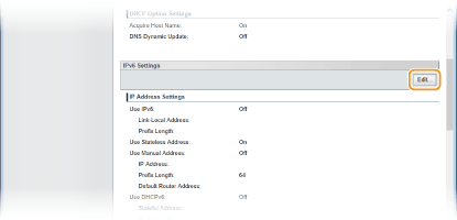 4. Click [Edit] in [IPv6 Settings].