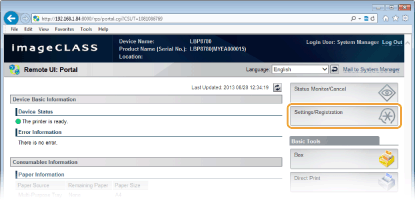 2. Click [Settings/Registration].