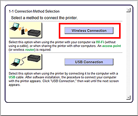 Now, the printer is ready for wireless LAN connection in the "Cableless setup" method.