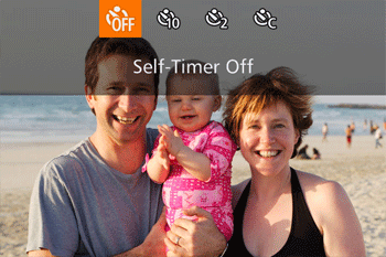 The self-timer can be used to shoot a group photo that includes the photographer or to prevent camera shake when pressing the shutter button.