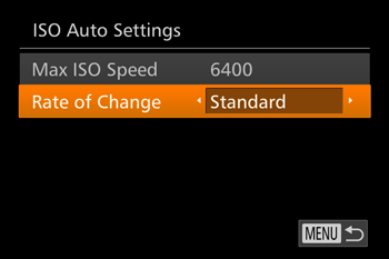 Also, with [ISO AUTO] selected, you can set the maximum ISO speed, or select the rate of change.