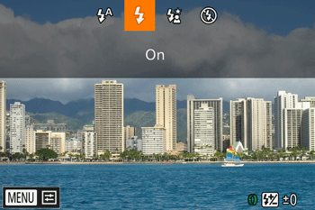 ) switch to raise the flash, then configure the setting. - <Flash> cannot be set to [On] in the following modes:
