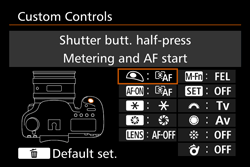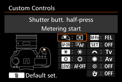 : Custom Controls] setting may be changed as follows.In this case, if the shutter button is pressed halfway, the camera is set to lock the AE (fix exposure)