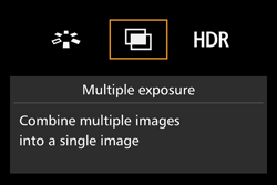 - If the power switch is set to <OFF>, the battery is replaced, or if you switch to movie shooting, multiple-exposure shooting will be canceled.