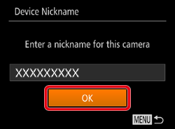 ] button.You can change the device nickname (display name) that is displayed on the camera. To change the nickname, press the [