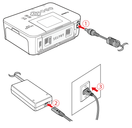 Insert the adapter plug fully into the power inlet on SELPHY.