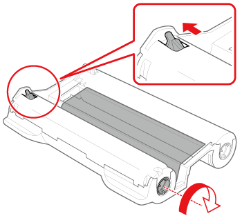 - Make sure the ink sheet is taut. Loose ink sheets may tear when loaded. If the sheet is loose, turn the sprocket as shown.