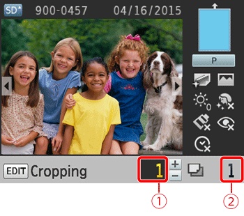Select images and specify the number of prints as follows. Here, printing from an SD memory card is described as an example, but you can print from other memory cards with the same steps.