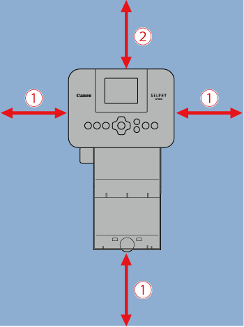 - Leave more open space behind the printer than the length of paper used, so that the paper can pass in and out of the printer freely when printing.