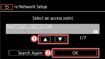 | Searching for Access Points | If your access point does not support the WPS* function or you cannot activate it, you can have the camcorder search for access points in the area. |