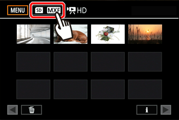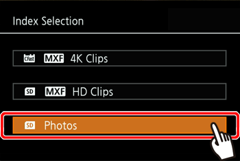 ) pressed down. The thumbnails of clips and photos you have recorded are shown in index screens sorted by the type of recording.