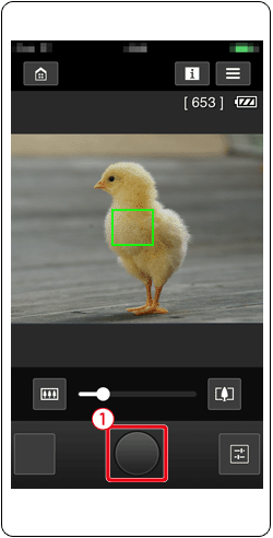 2. Once the camera is ready for remote shooting, a live image from the camera will be displayed on the smartphone. At this time, a message is displayed on the camera, and all operations except pressing the power button are disabled.