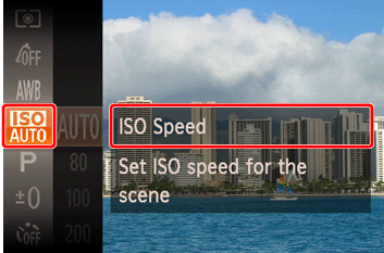 ]. - In some shooting modes it may not be possible to set the ISO speed.