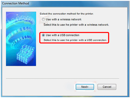 When the screen below is displayed, select [Use via USB Connection] and click [Next].