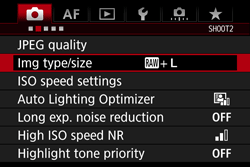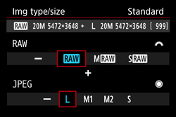 - When shooting still photos, select [Img type/size] under the [
