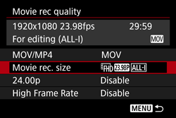 - When shooting movies, select [Movie rec quality]