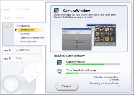 Although a CD-ROM is not included with the camera, installers for software applications (Digital Camera Software 7.2) can be downloaded from the Canon website.