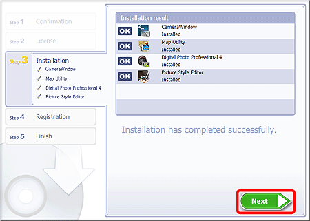 : [Custom Installation] to select the software applications that you want to install.10. The following screen will appear. Click [OK].