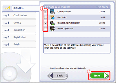 ) of the software applications that you do not wish to install.)After confirming that you have selected all the software applications for installation, click
