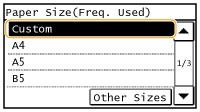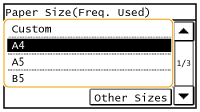 - You can set the machine to display only frequently used paper sizes in the selection screen.