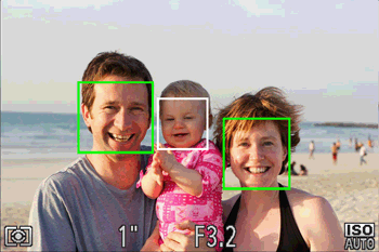 - Make sure a green frame is displayed around the face you focus on and white frames around other faces.