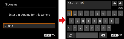 ] button to display the keyboard, and then enter the desired nickname. After you have finished entering the nickname, press the [MENU] button to return to the registration screen, press the [