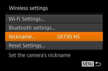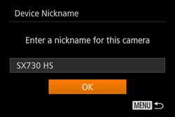 - This nickname will be displayed on [Select a Device] screen when connecting to other devices via Wi-Fi.