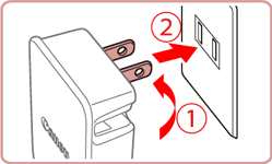 - When charging has finished, remove the compact power adapter from the power outlet and the interface cable from the camera.