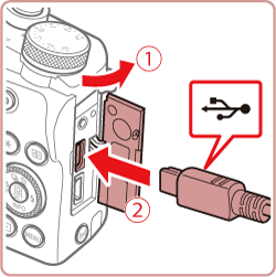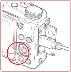 The battery pack can be charged without removing it from the camera by using the USB cable.