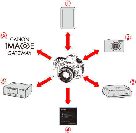 ![]() | ![]() | Connect the camera to a smartphone or tablet via Wi-Fi and use the dedicated application "Camera Connect" to operate the camera remotely or view images stored in the camera. "Smartphone" refers to smartphones and tablets. |