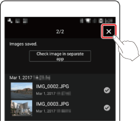 . - The selected images will be saved to the smartphone. (To select all images at once, press the [