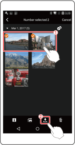 . The selected images will be saved to the smartphone. - To select all images at once, press the [