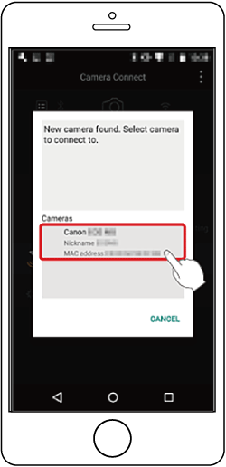 7.Choose the camera to connect to.- On the camera selection screen displayed on the smartphone, choose the camera to begin pairing.